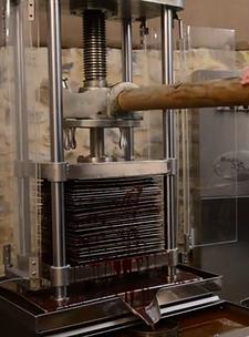 Είτε χειροκίνητα, είτε αυτοματοποιημένα με τη χρήση του υδραυλικού συστήματος, η ζύμη πιέζεται για να διαχωριστούν τα υγρά από τα στερεά συστατικά της ζύμης.